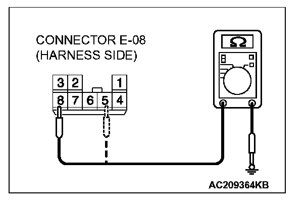 2. Measure the resistance value between terminal 5 and ground, and also between terminal 8 and ground.