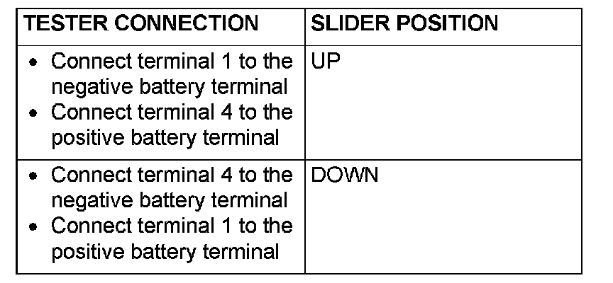 2. Check continuity when the power window sub-switch (rear: RH) is operated to "UP" or "DOWN" position.