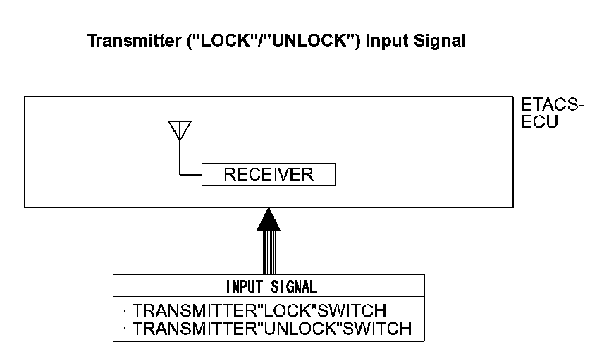 A receiver is incorporated in the ETACS-ECU. This receiver receives a lock or unlock signal from the transmitter.