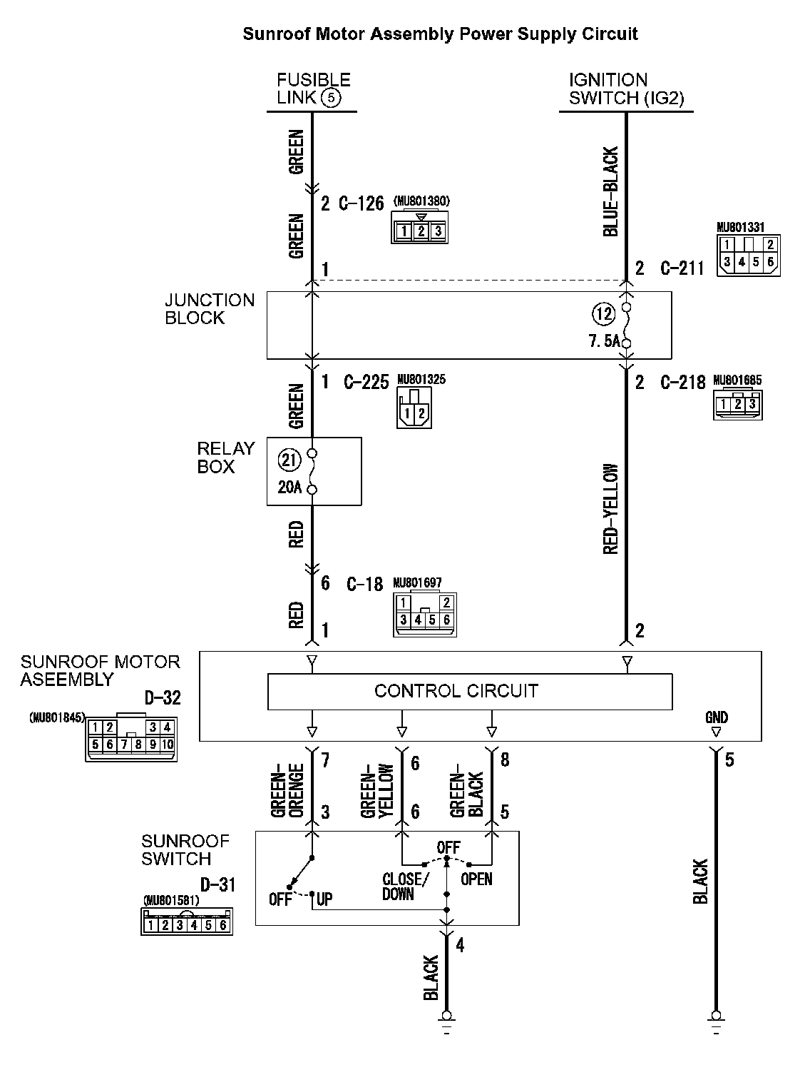 Q: Is sunroof switch connector D-31 in good condition?