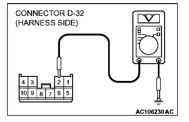 1. Disconnect sunroof motor assembly connector D-32 and measure the voltage available at the wiring harness side of the connector.
