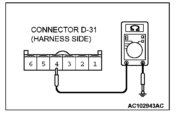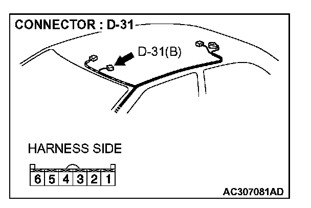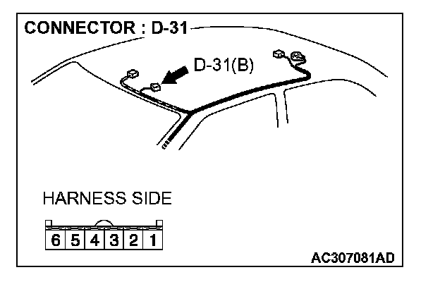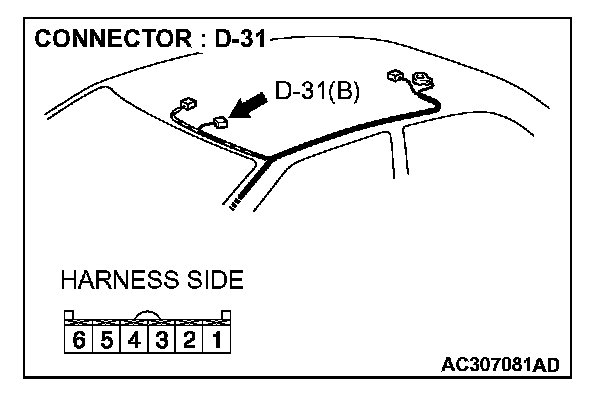 1. Disconnect sunroof switch connector D-31 and measure the resistance available at the wiring component side of the connector.