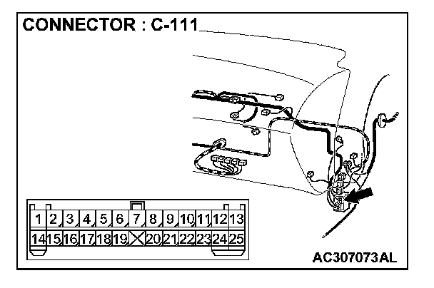 NOTE: Also check intermediate connector C-111 for loose, corroded, or damaged terminals, or terminals pushed back in the connector. If intermediate connectors C-111 is damaged, repair or replace the damaged component(s) as described in Harness Connector Inspection.