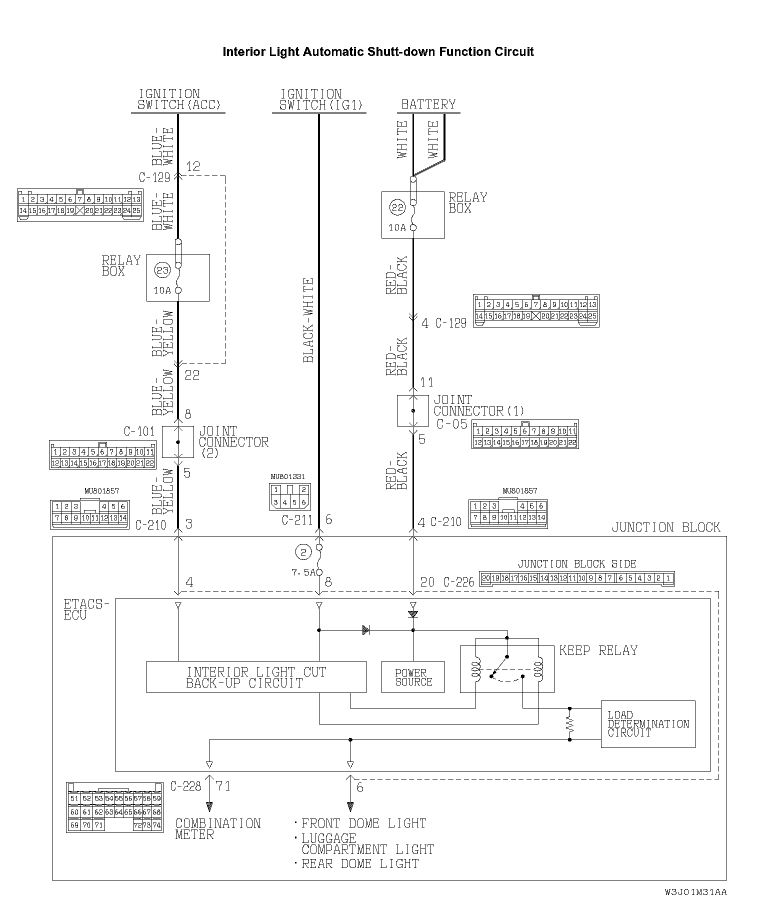 ETACS-ECU does not receive any interior light loaded signal.Interior Light Automatic Shutt-down Function Circuit Part 1: