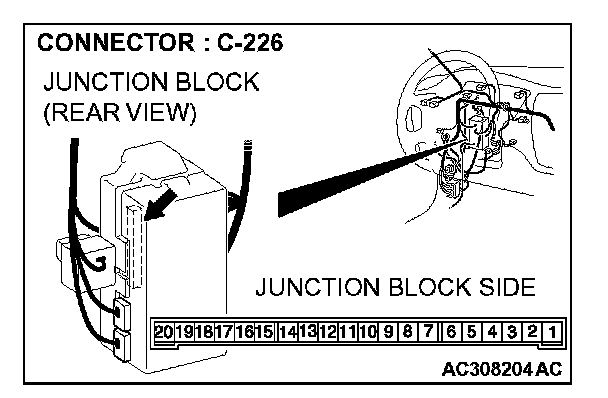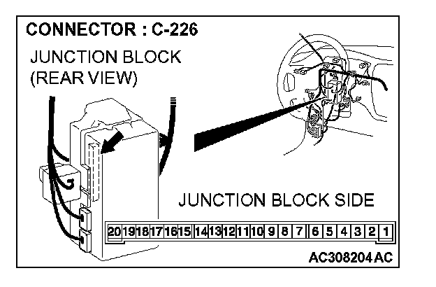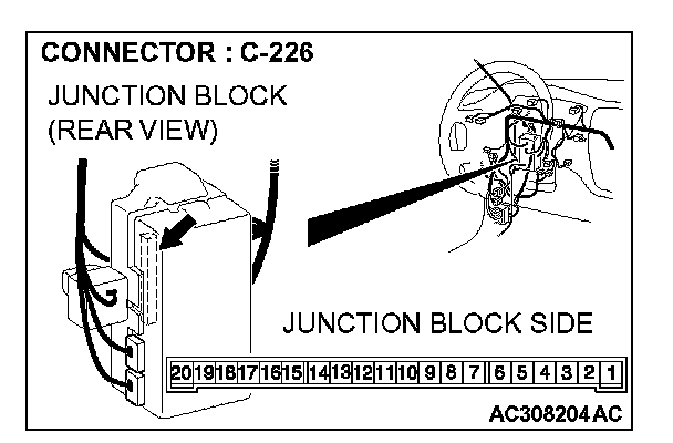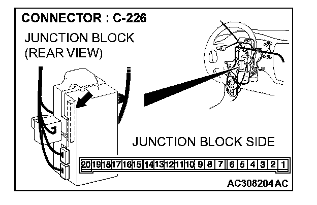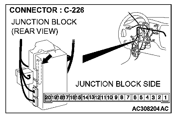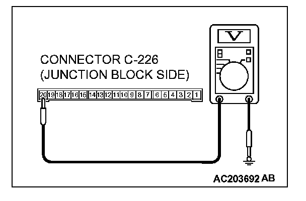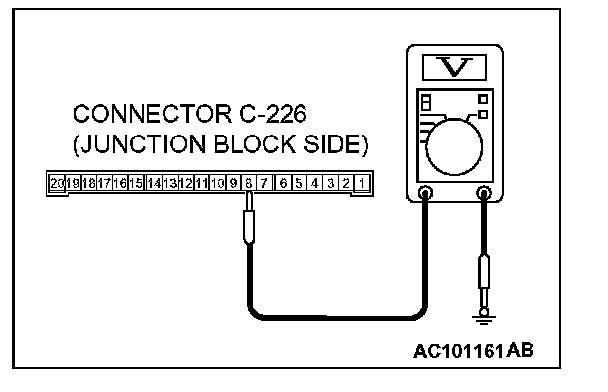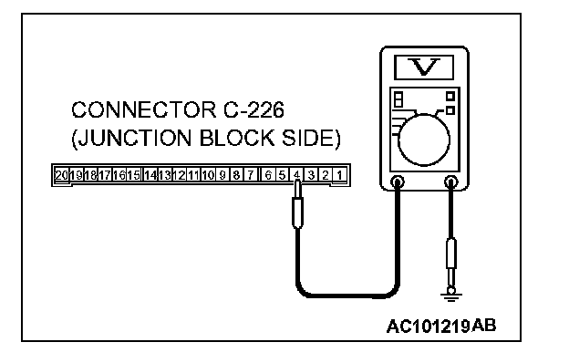 1. Disconnect ETACS-ECU connector C-226 and measure the voltage available at the junction block side of the connector.