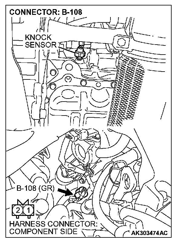 1. The ignition timing should retard more when knock sensor connector B-108 is disconnected than when it is connected.