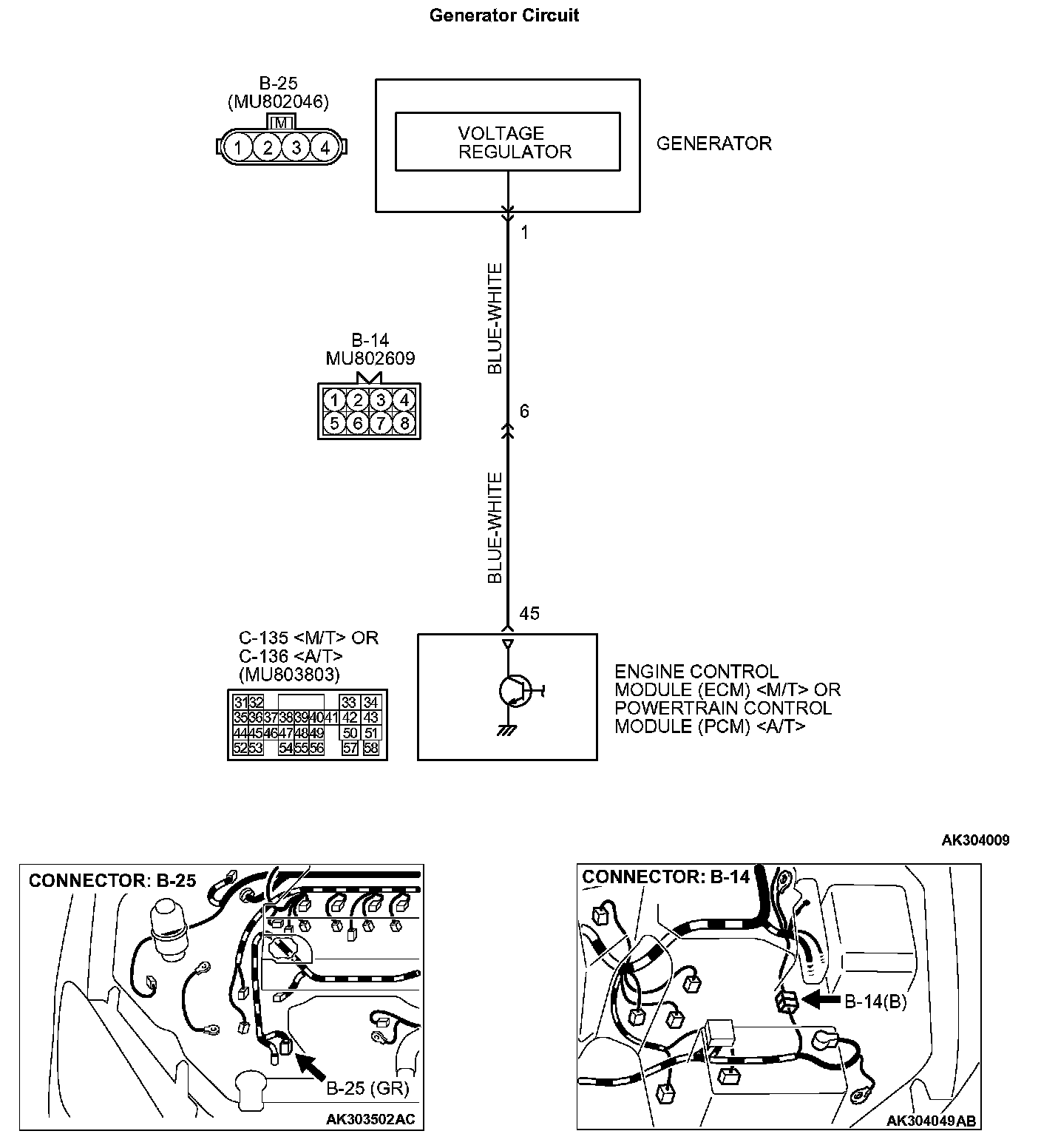 STEP 2. Check connector B-14 at generator intermediate connector for damage.