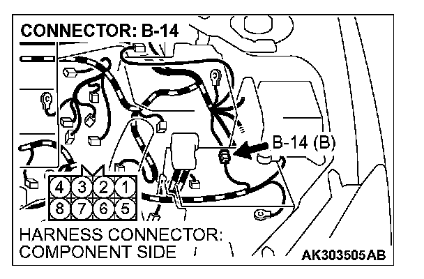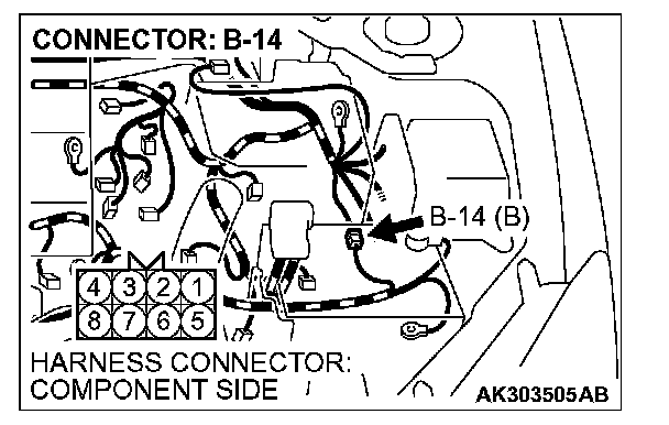 NOTE: Check harness after checking intermediate connector B-14. If intermediate connector is damaged, repair or replace it. Refer to Harness Connector Inspection. Then check that, the malfunction is eliminated.