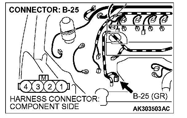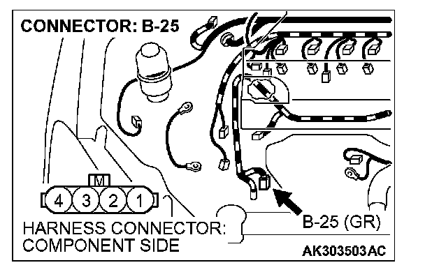 STEP 5. Check for open circuit and short circuit to ground and harness damage between generator connector B-25 (terminal No. 1) and ECM connector C-135