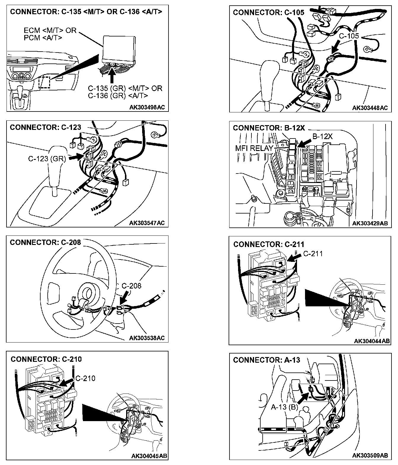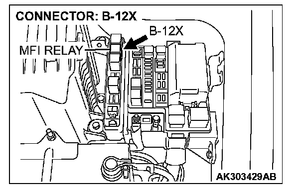 STEP 1. Check harness connector B-12X at MFI relay for damage.