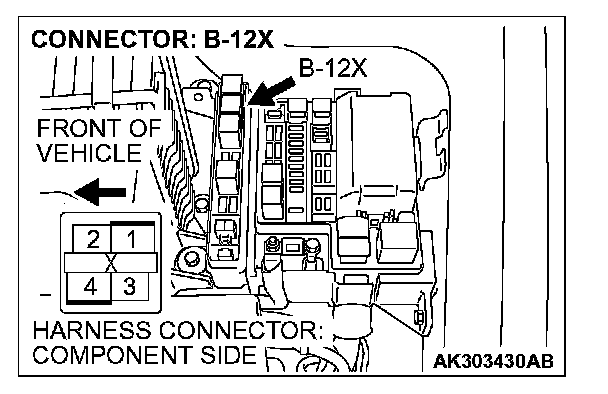 1. Disconnect the connector B-12X and measure at the harness side.