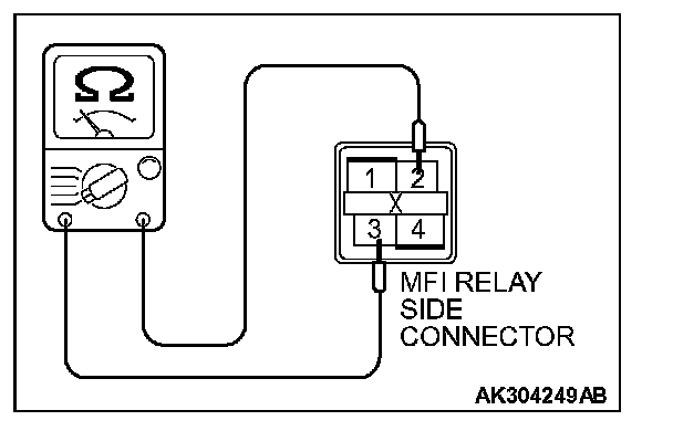 2. Check for continuity between the MFI relay terminal No. 2 and No. 3.