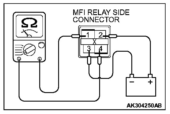 - Battery positive voltage is applied to the MFI relay (terminals No. 1, No. 2).