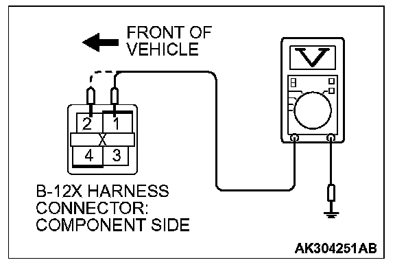 STEP 3. Measure the power supply voltage at MFI relay harness side connector B-12X.