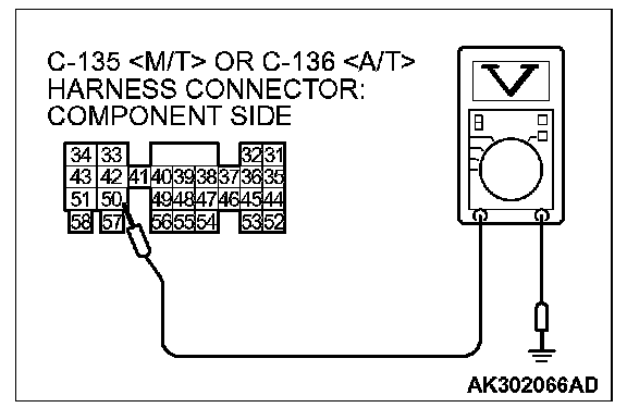 3. Measure the voltage between terminal No. 50 and ground.