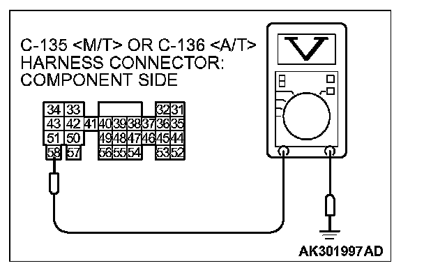 2. Measure the voltage between terminal No. 58 and ground.
