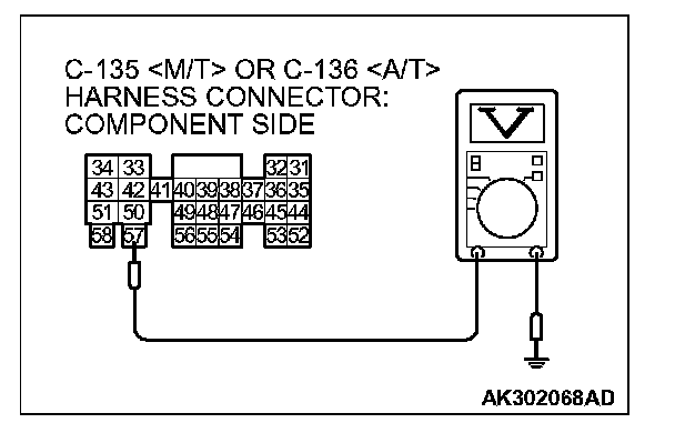 2. Measure the voltage between terminal No. 57 and ground.