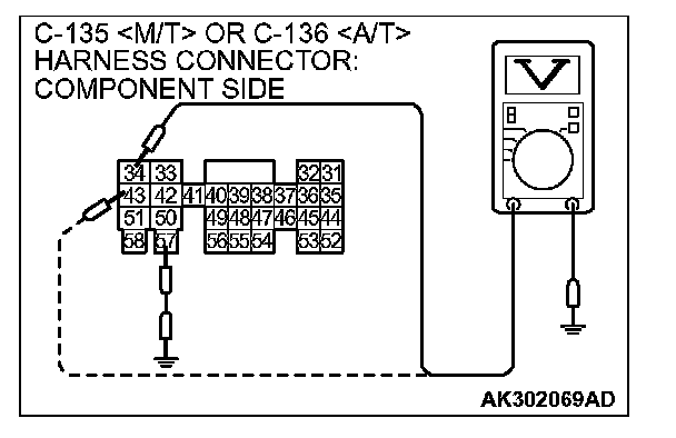 3. Measure the voltage between terminals (No. 34, No. 43) and ground.