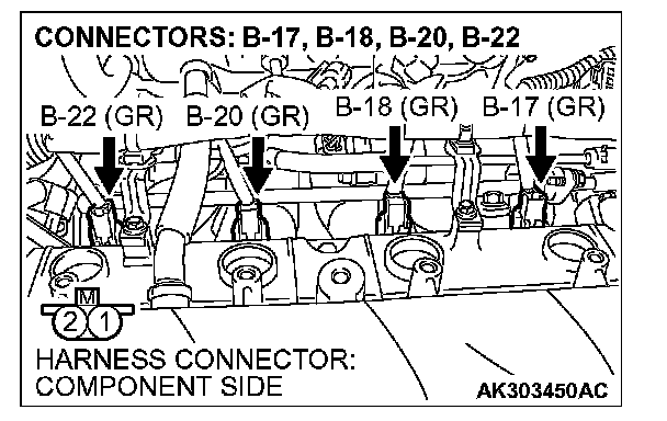 1. Disconnect the injector connector B-17, B-18, B-20, B-22.
