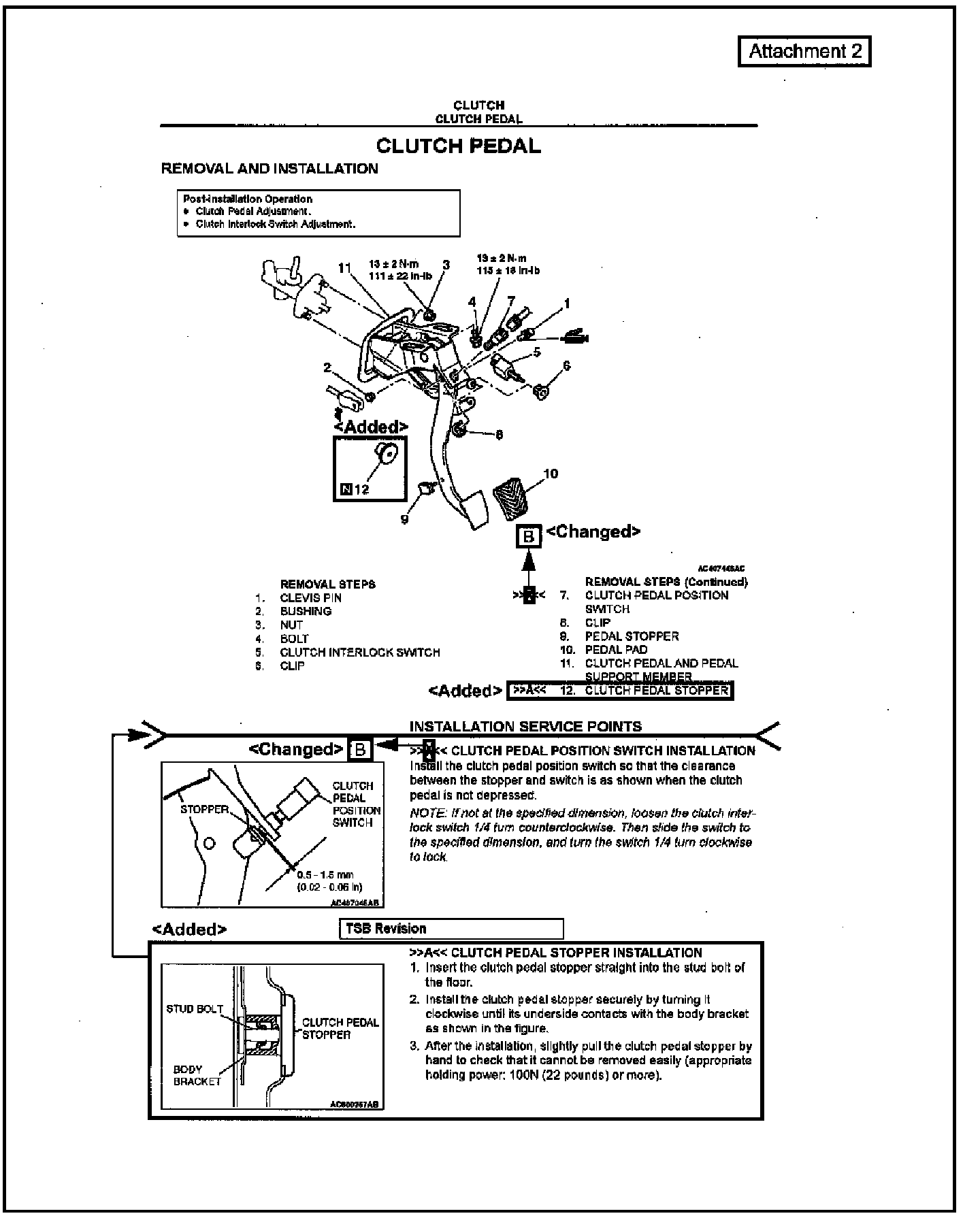 INSTALLATION OF ACCELERATOR STOPPER AND CLUTCH PEDAL STOPPER - SERVICE MANUAL REVISION