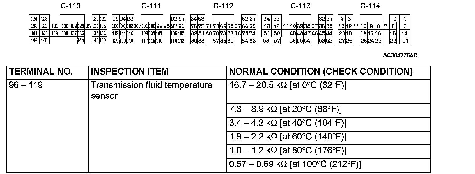 PCM Terminal Resistance and Continuity Inspection Chart