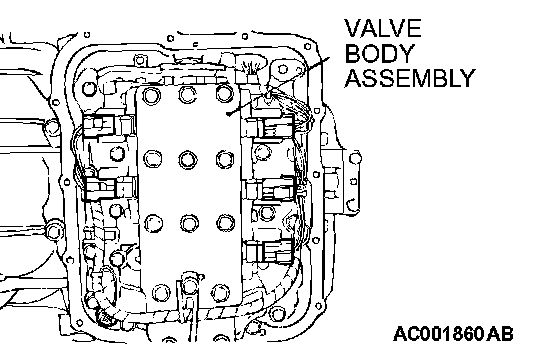 Check the installation bolts for looseness and the O-ring, valves and valve body for damage. Repair or replace the faulty parts. Replace the valve body assembly if the damages are thought to be irreparable. Then check the symptom.
