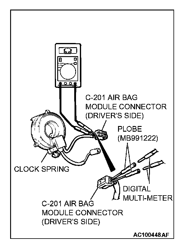 4. Insert the special tool (MB991222) from behind the airbag module connector of the C-201 driver's seat.