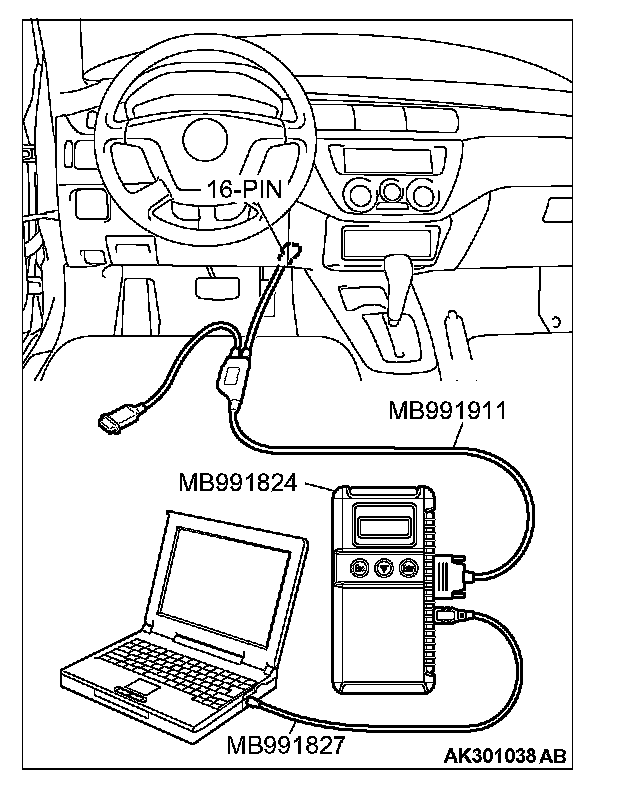 1. Connect scan tool MB991958 to the data link connector (16-pin).