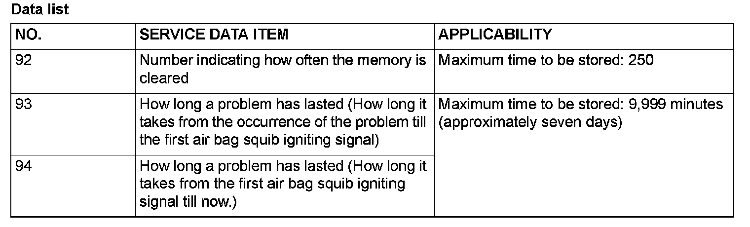 3. Read the data list (fault duration and how many times memories are erased) using scan tool MB991958.