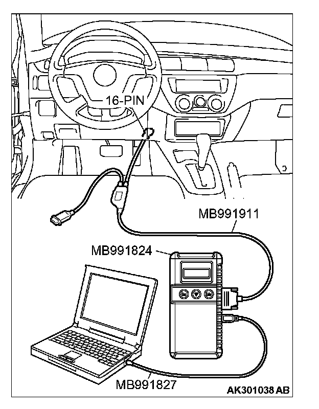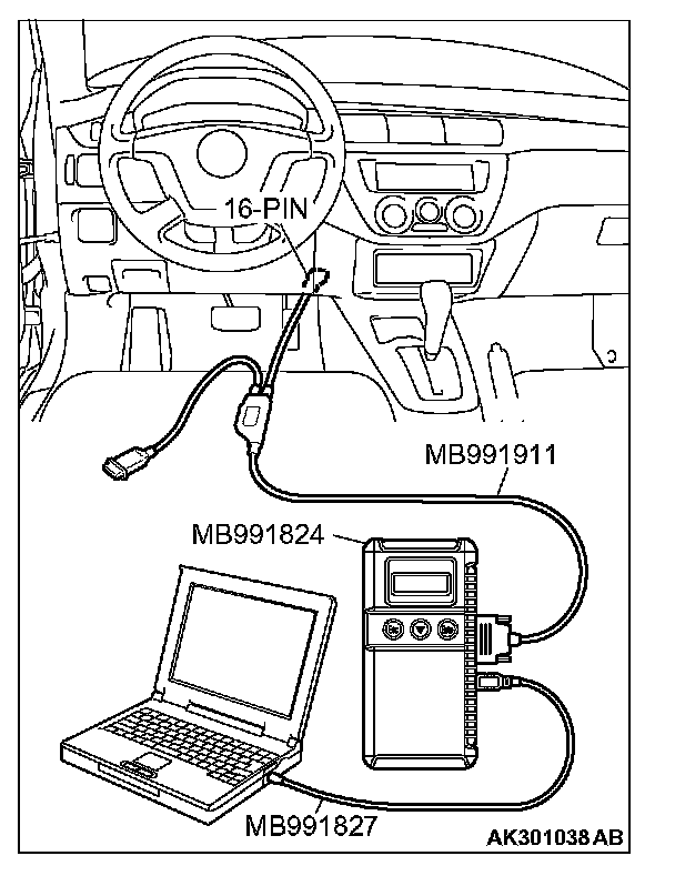 3. Connect special tool MB991827 to special tool MB991824 and the personal computer.