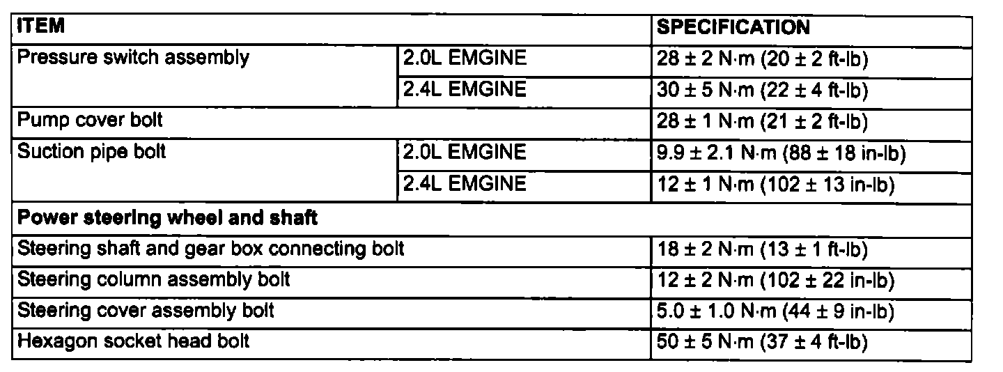 Power Steering Tightening Specifications