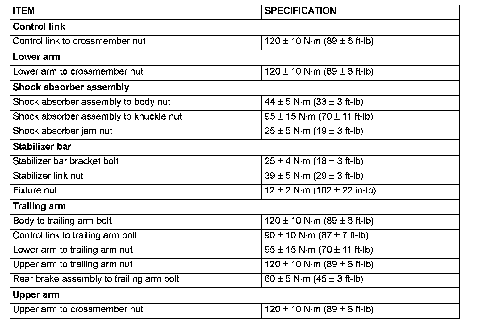 FASTENER TIGHTENING SPECIFICATIONS