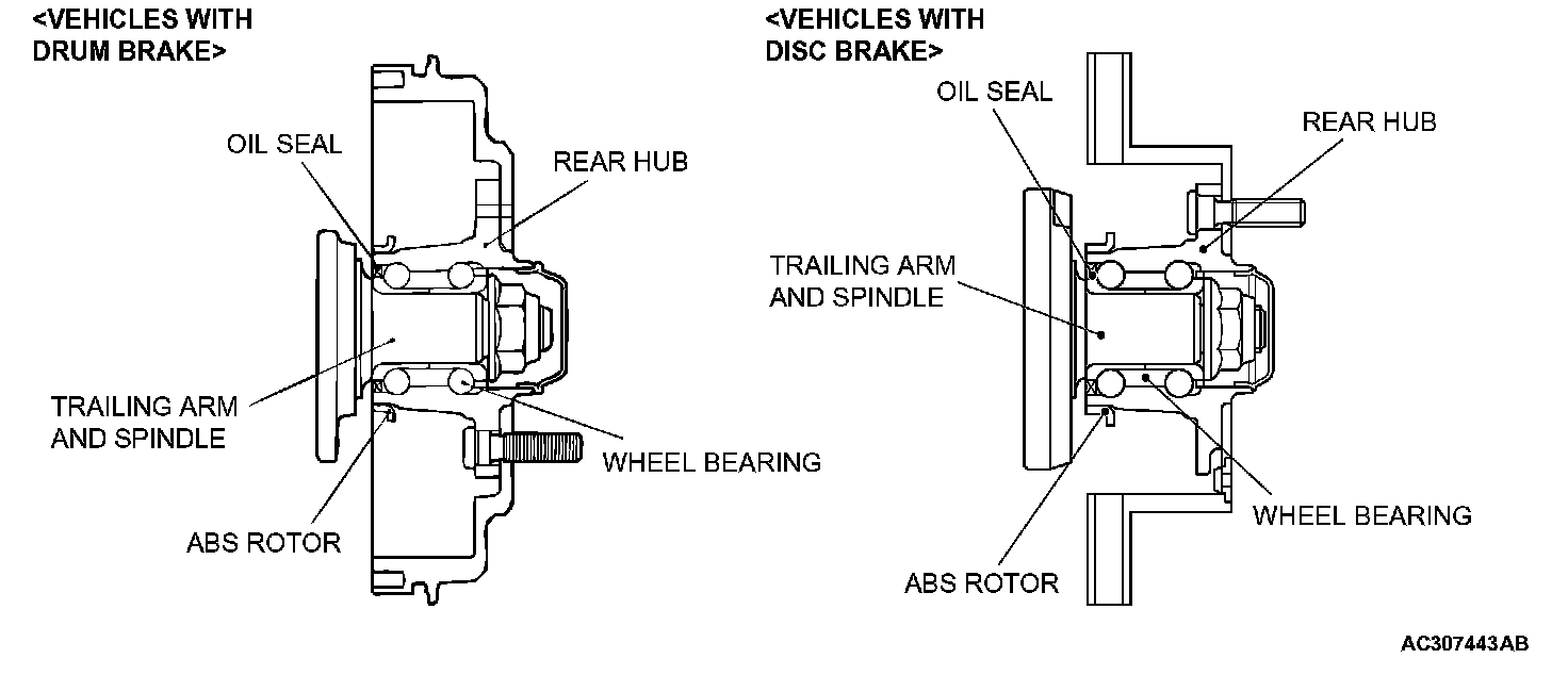 ^ The wheel bearing is a unit ball bearing (double-row angular contact ball bearing) which incorporates the oil seals and is highly resistant to a thrust load.