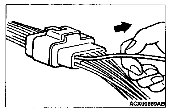 Use special tool, MB991219, to inspect the engagement of the male pins and female pins. [Pin drawing force: 1 N (0.2 pound) or more]