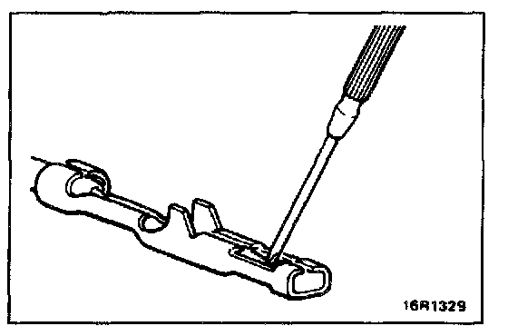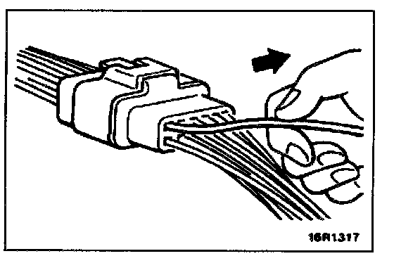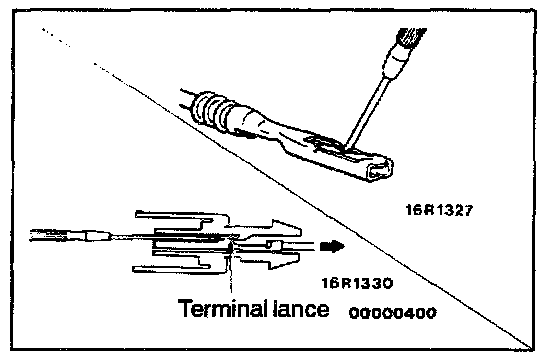 A connector that engages loosely can be repaired by removing the female terminal from the connector housing and raising its lance to establish securer engagement. Removal of the connector terminal used for MFI and ELC-4 A/T control circuit can be done in the following manner.