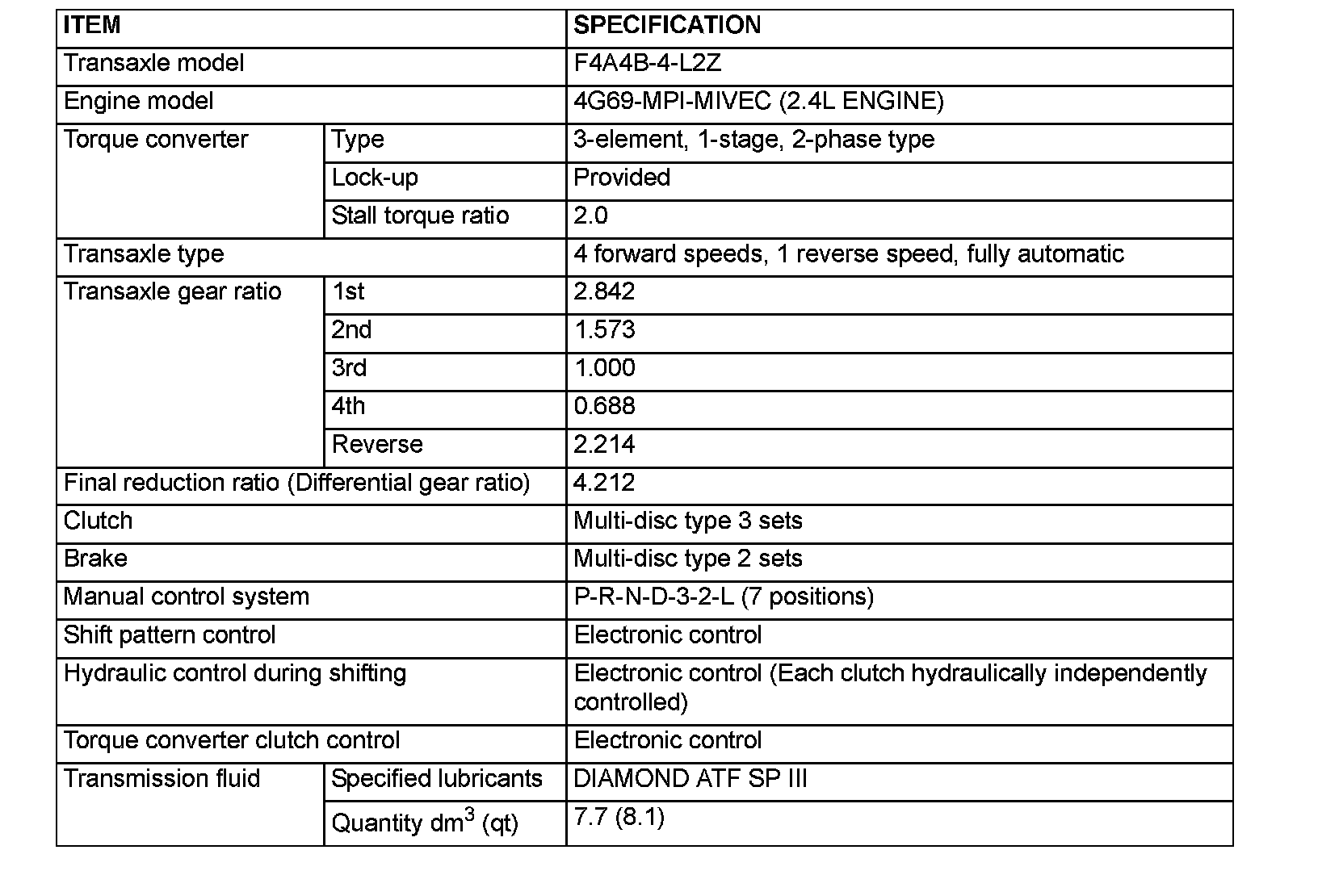 Lancer L4-2.4L SOHC