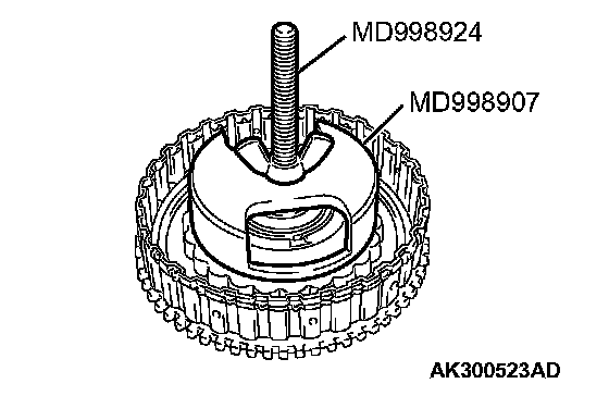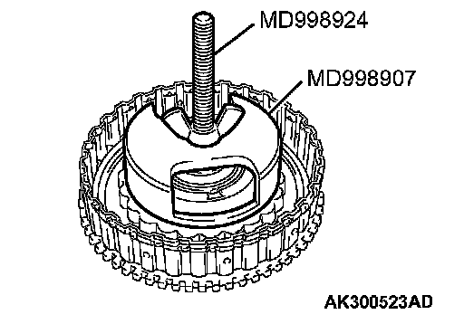 1. Set special tools MD998907 and MD998924 as shown in the illustration.