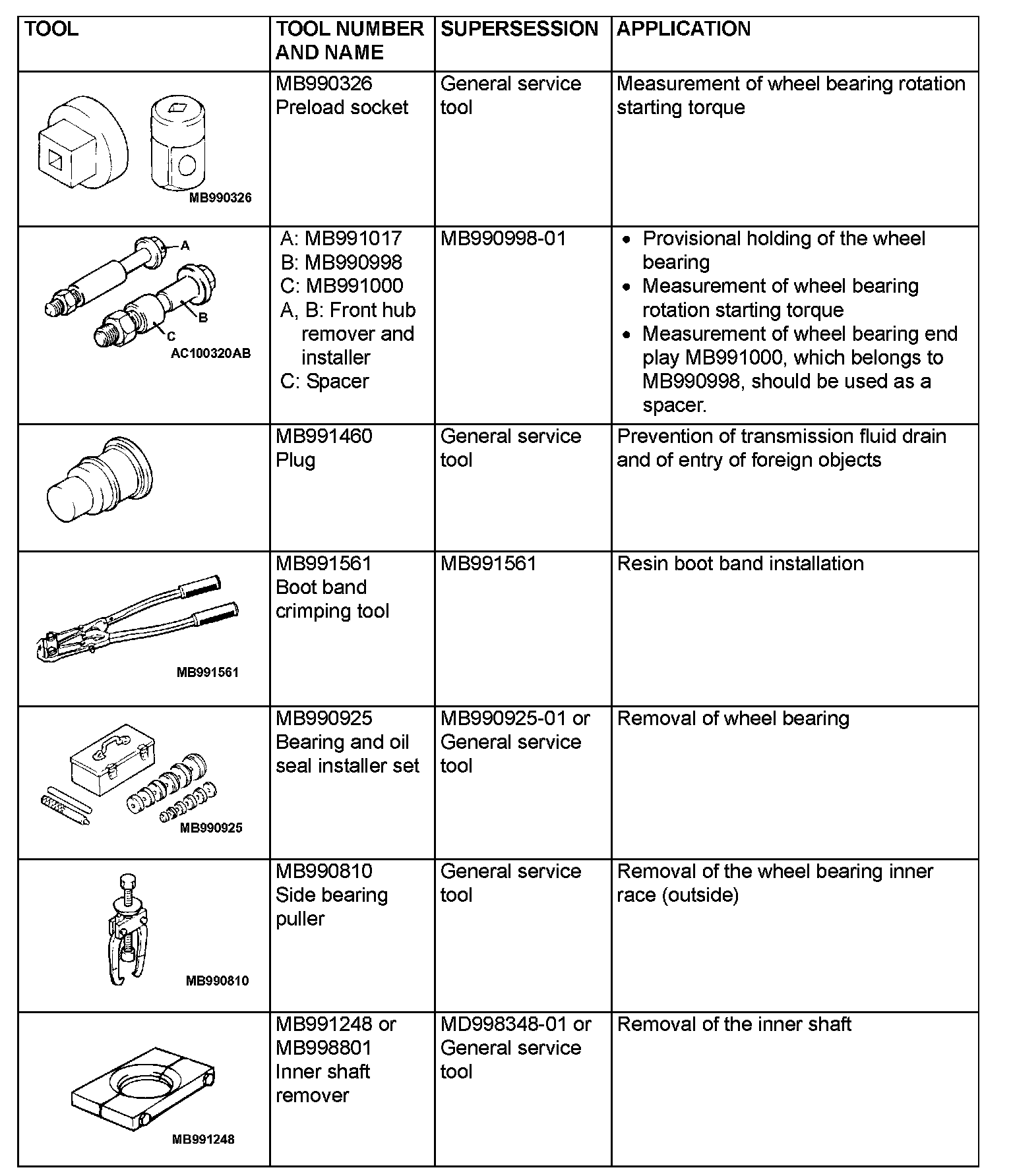 Drive Axles, Bearings and Joints: Tools and Equipment