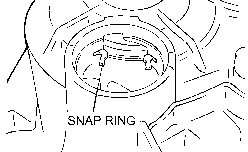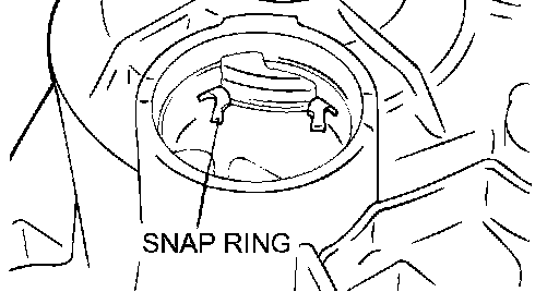2. Align the transaxle case and expand the snap ring. After the case is on far enough for the snap ring to ride on the bearing, release the snap ring. Push down on the transaxle case, twisting it from side to side until the case contacts the housing.