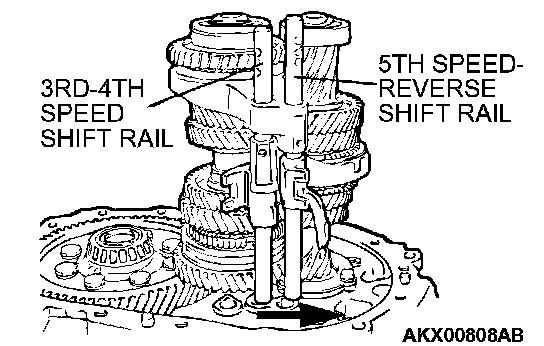 4. Insert the 3rd-4th speed shift rail and 5th speed-reverse shift rail into the rail hole in the clutch housing.