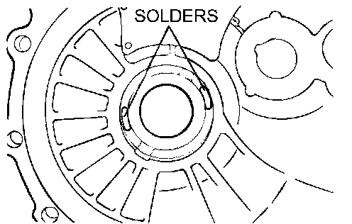 1. Put solders [1.6 mm (0.063 inch) diameter, about 10 mm (0.39 inch) long] in the illustrated positions of the transaxle case.