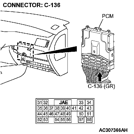 STEP 4. Check the harness for open circuit between PCM connector C-136 terminal 58 and battery.