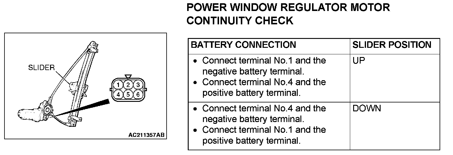 Power Window Regulator Motor Continuity Check: