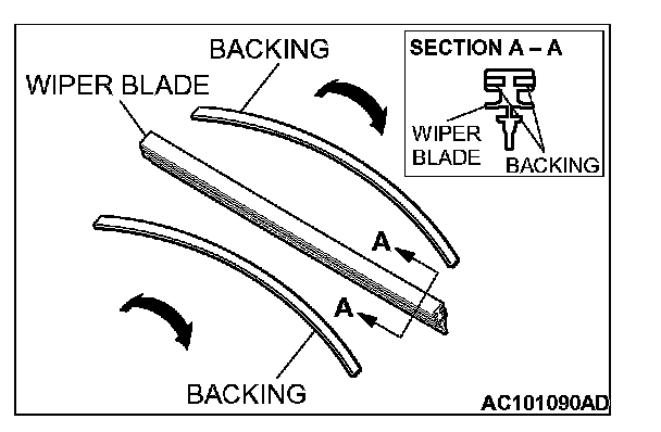 When installing the wiper blade, check that the backing inside the wiper blade is warped toward the wiper arm.