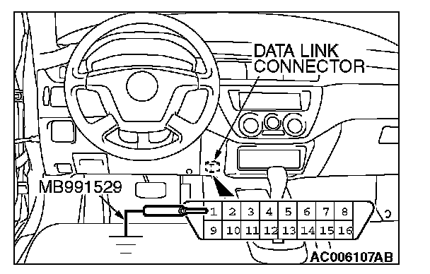 CAUTION: Turn the ignition switch to the "LOCK" (OFF) position and then connect data link connector terminal 1 to ground.