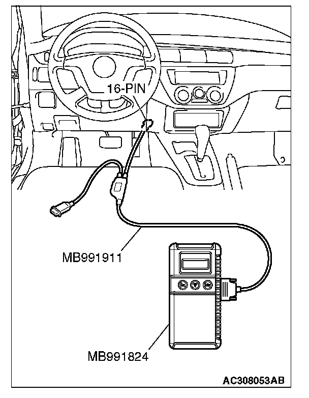 1. Connect the vehicle communication interface (V.C.I.) MB991824 to the data link connector.