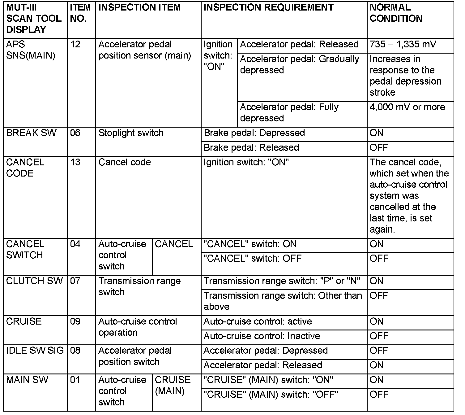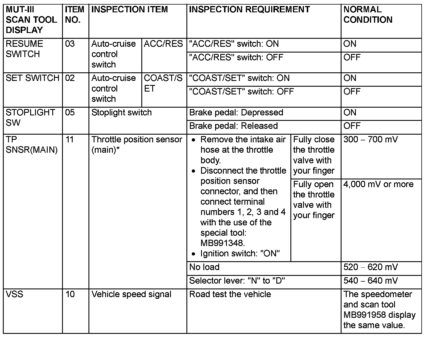 NOTE: *: Disconnect the throttle position sensor connector, and then delete the diagnostic trouble code that was recorded during the inspection with the use of scan tool MB991958 after the inspection has been completed.