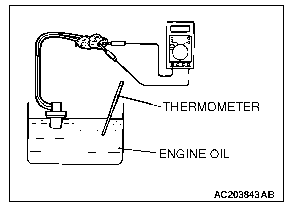 2. When the oil temperature reaches the standard value, check the continuity between the terminals.