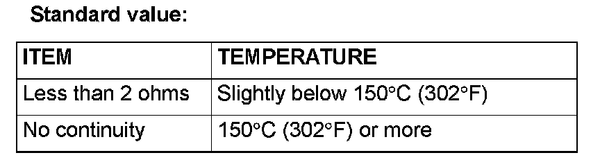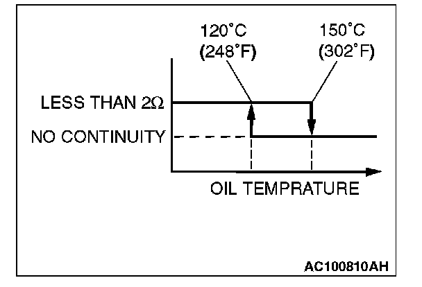 NOTE: When the oil temperature is 150 °C (302 °F) or more and there is no continuity, the resistance will not be 2 Ohms or lower until the oil temperature reduces to 120 °C (248 °F) or less.