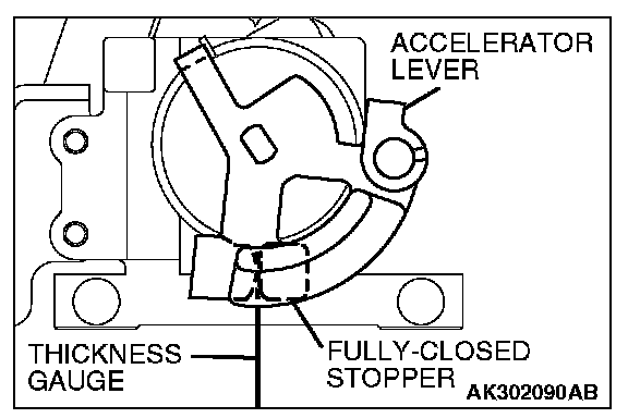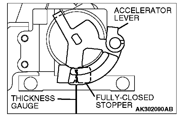 4. Insert a thickness gauge with a thickness of 0.60 mm (0.024 in.) in between the accelerator lever and the fully closed stopper.